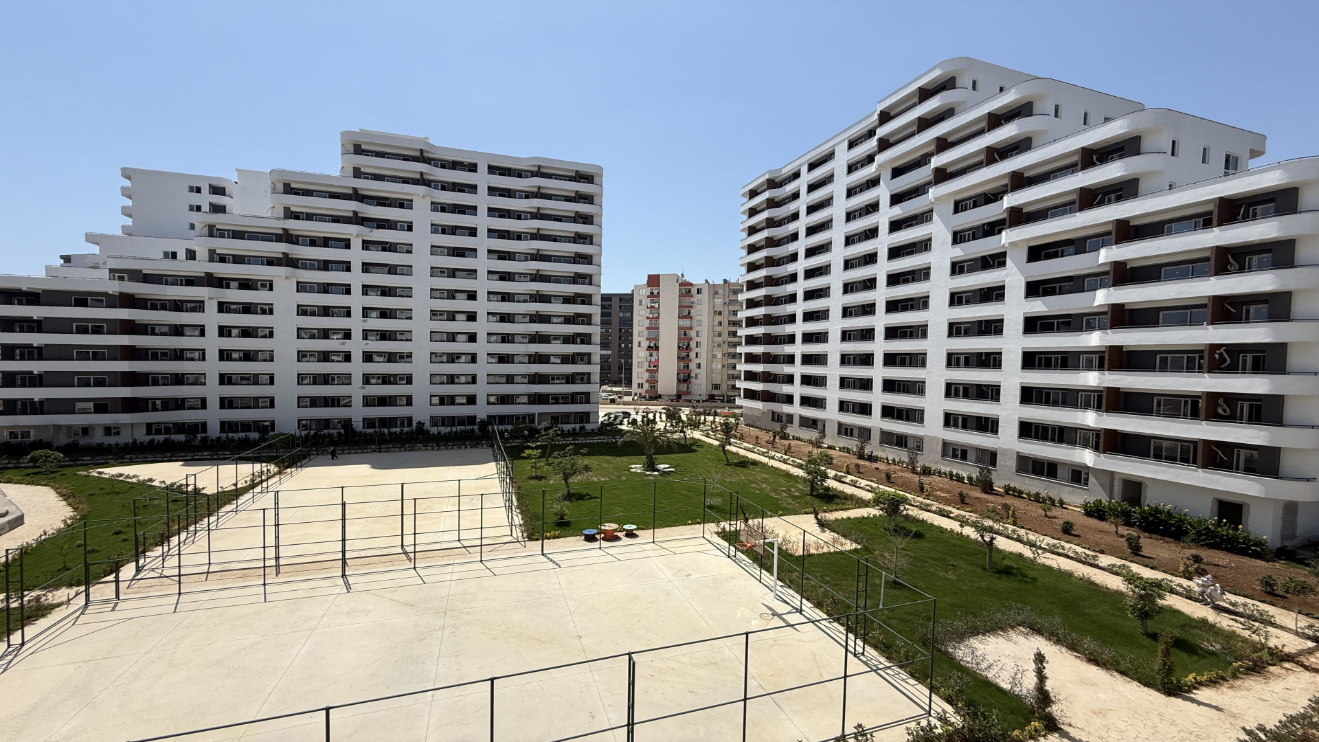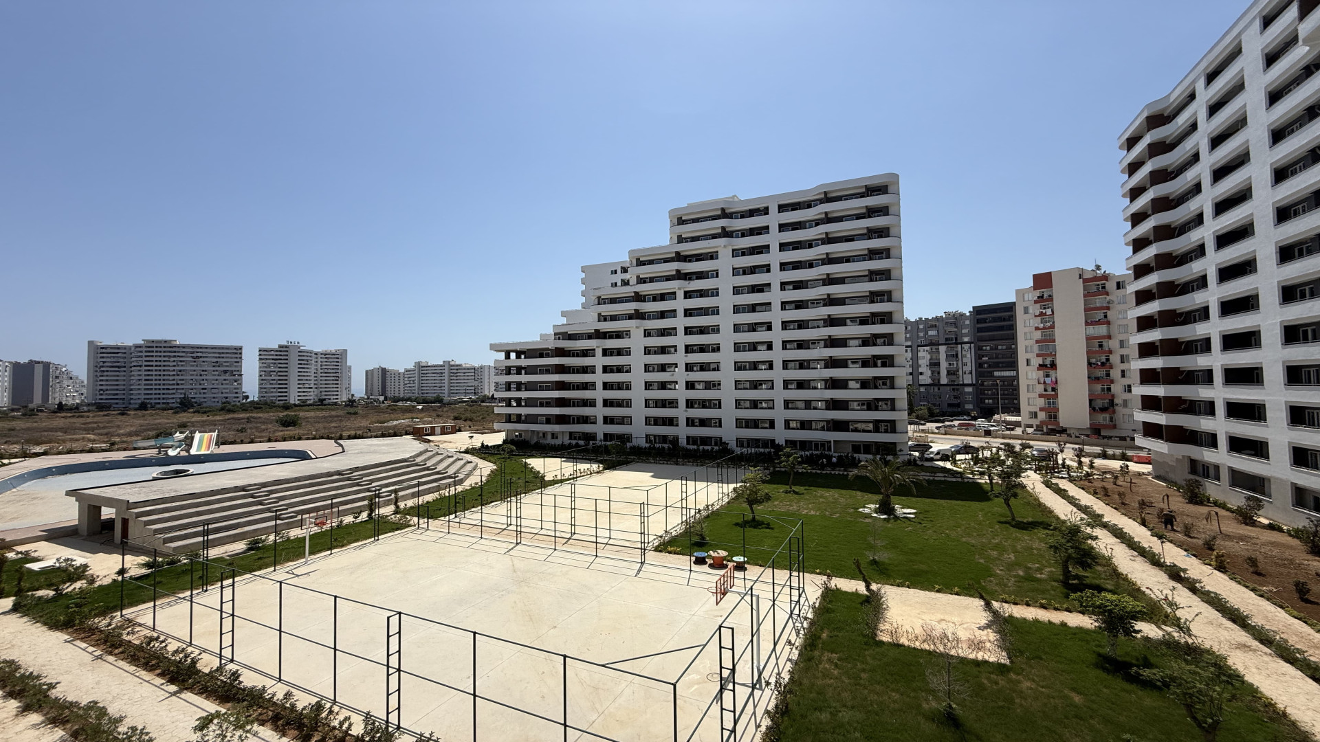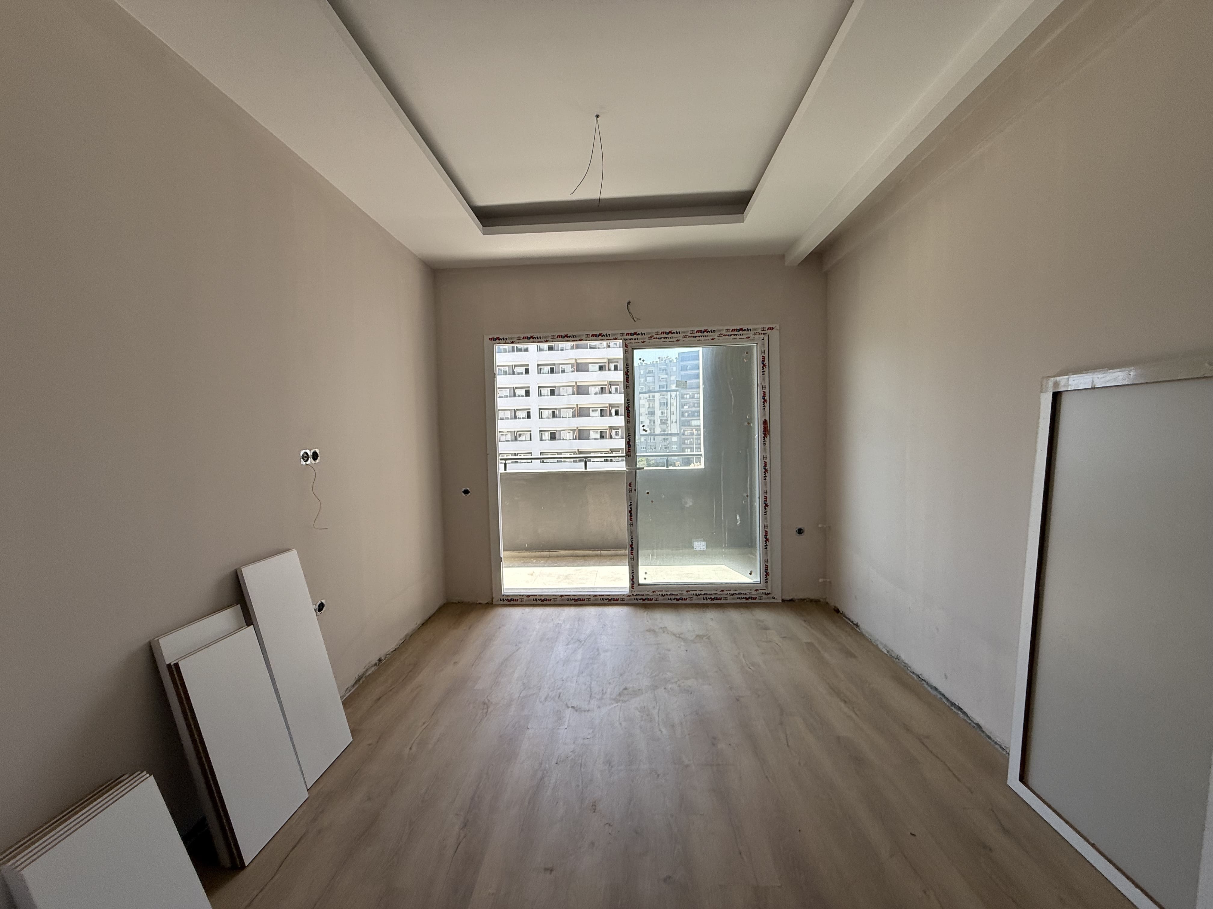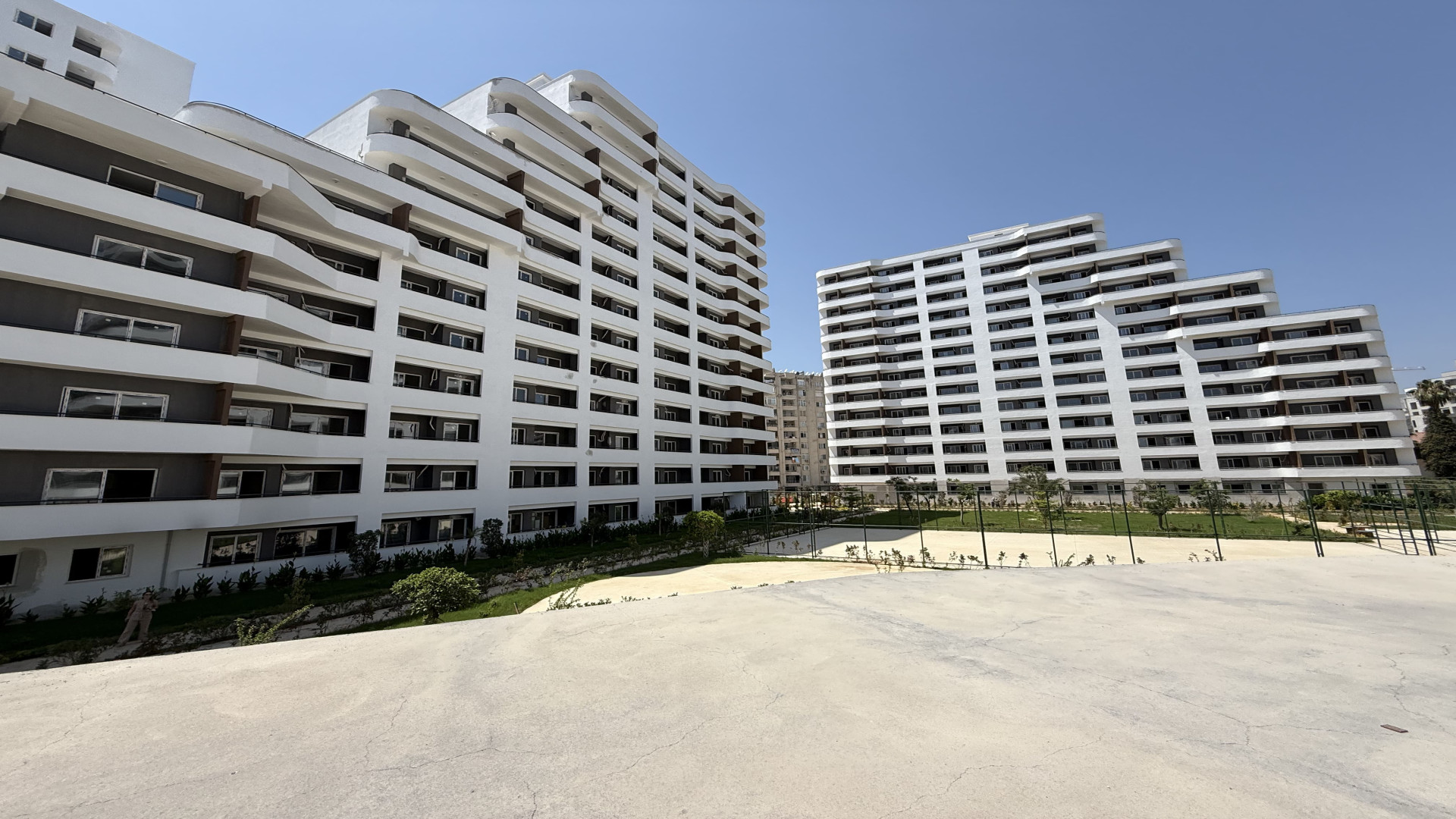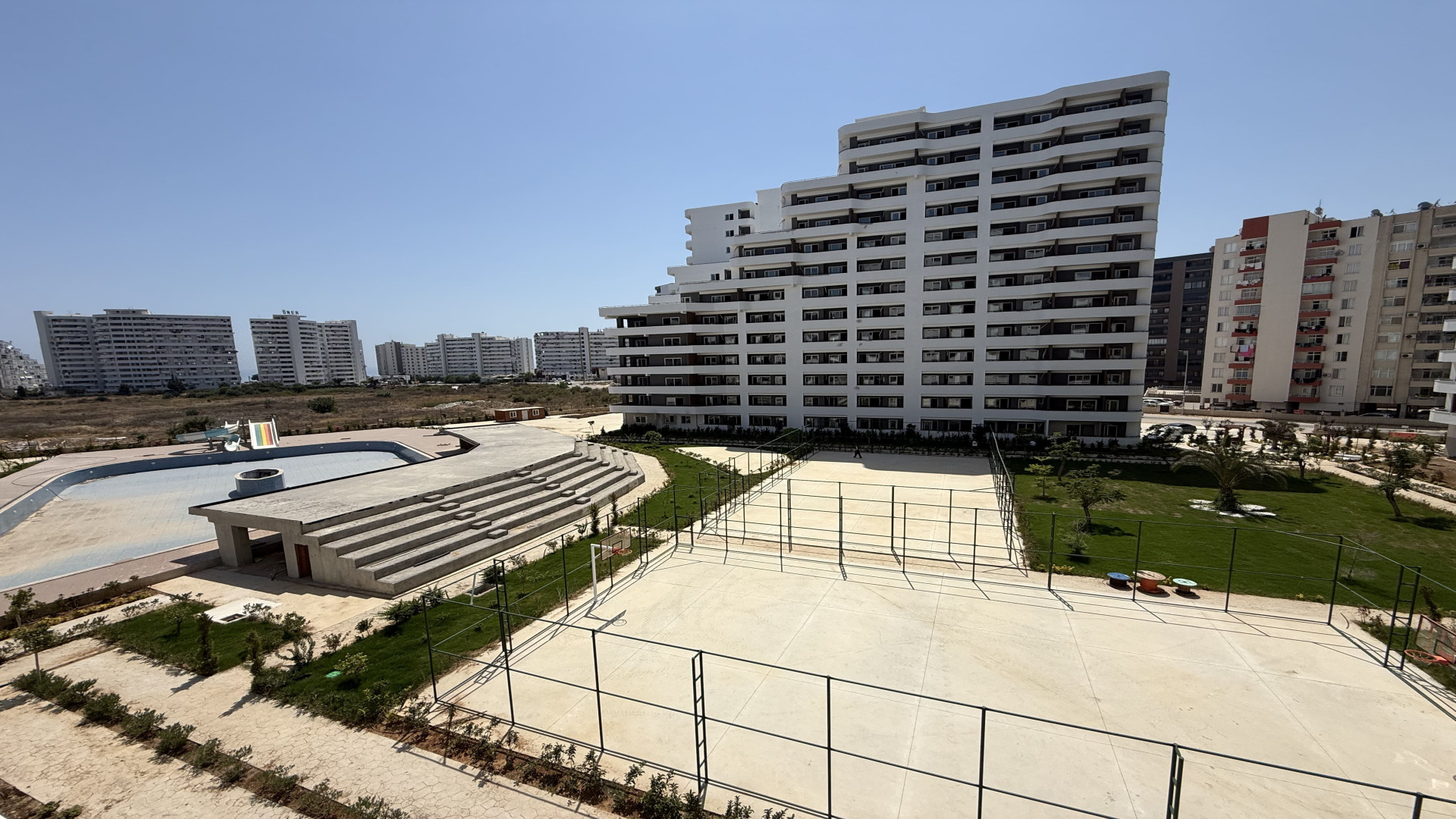 Tömük/Erdemli'de, 15 katlı binanın 3. katında 70 m² brüt (50 m² net) 1+1 daire. Cephe: güney ve batı. Isıtma: doğalgaz kombi. Yeni bina. Hamam ve sauna mevcut.