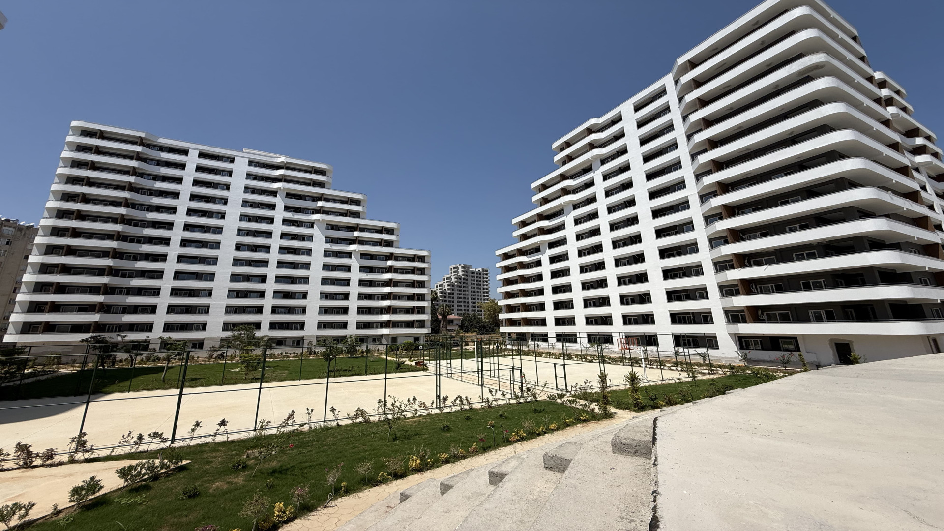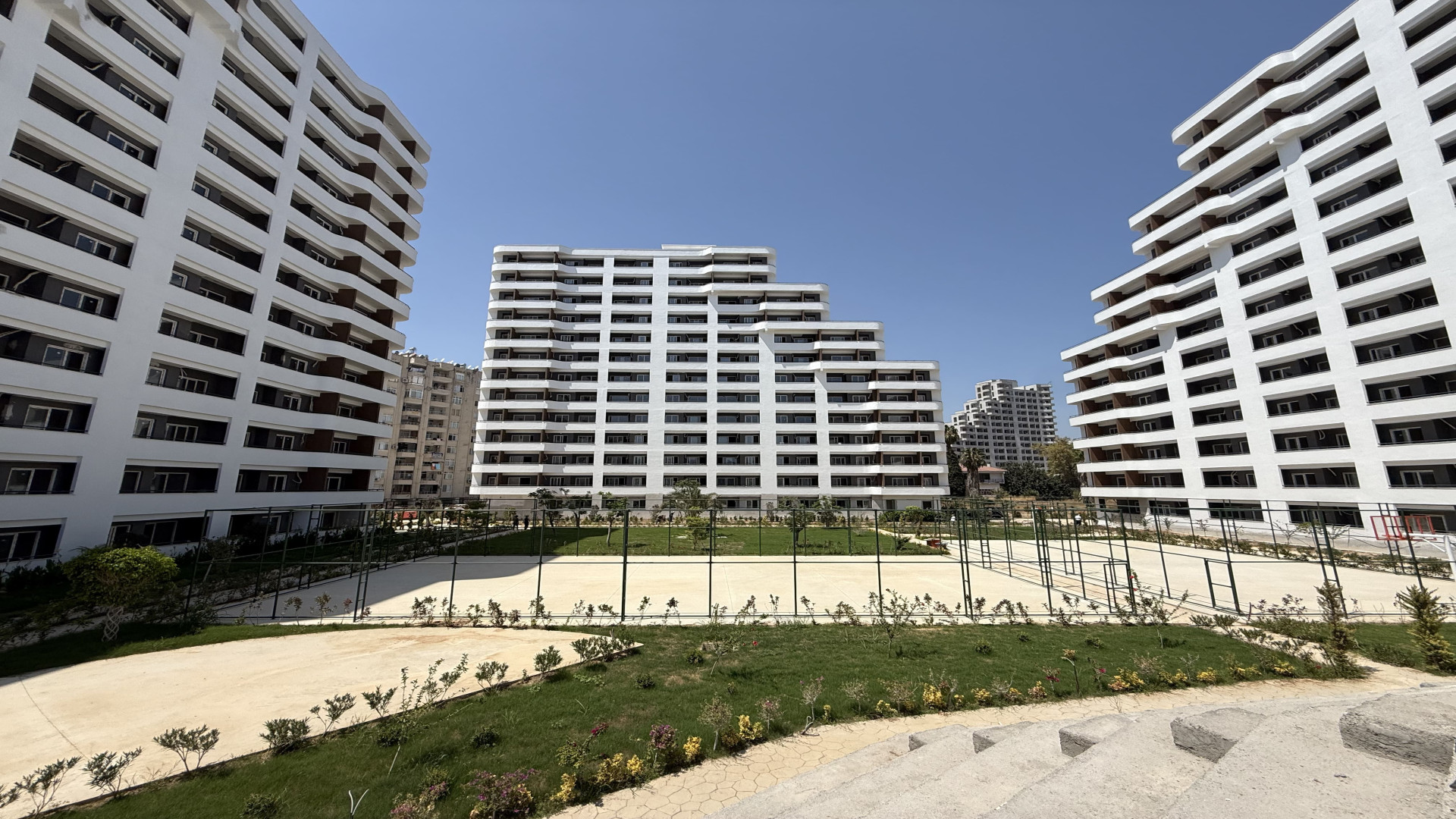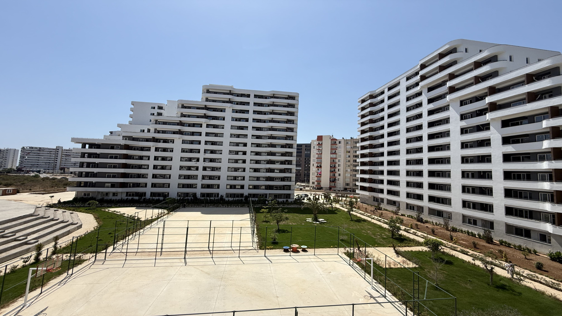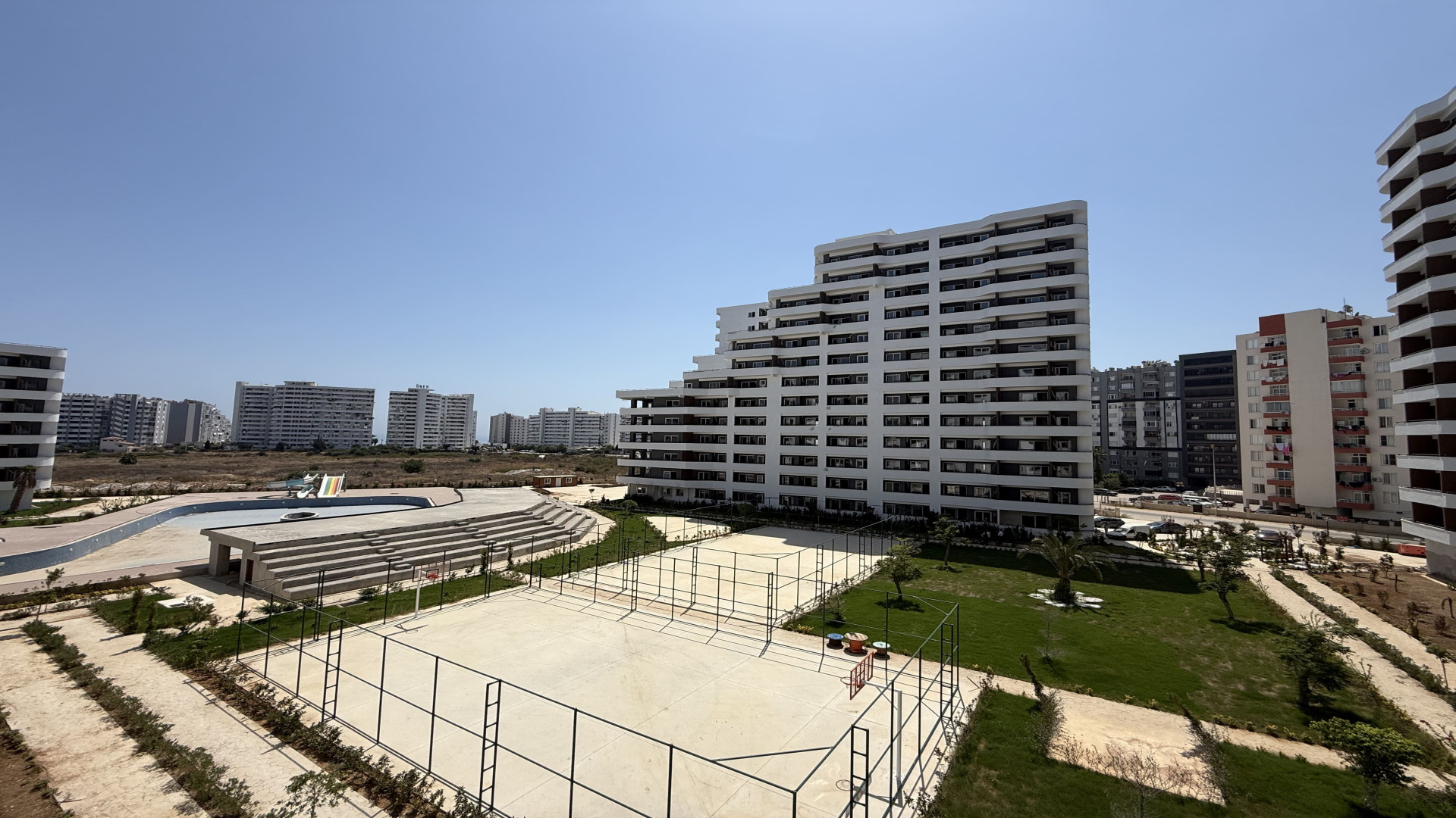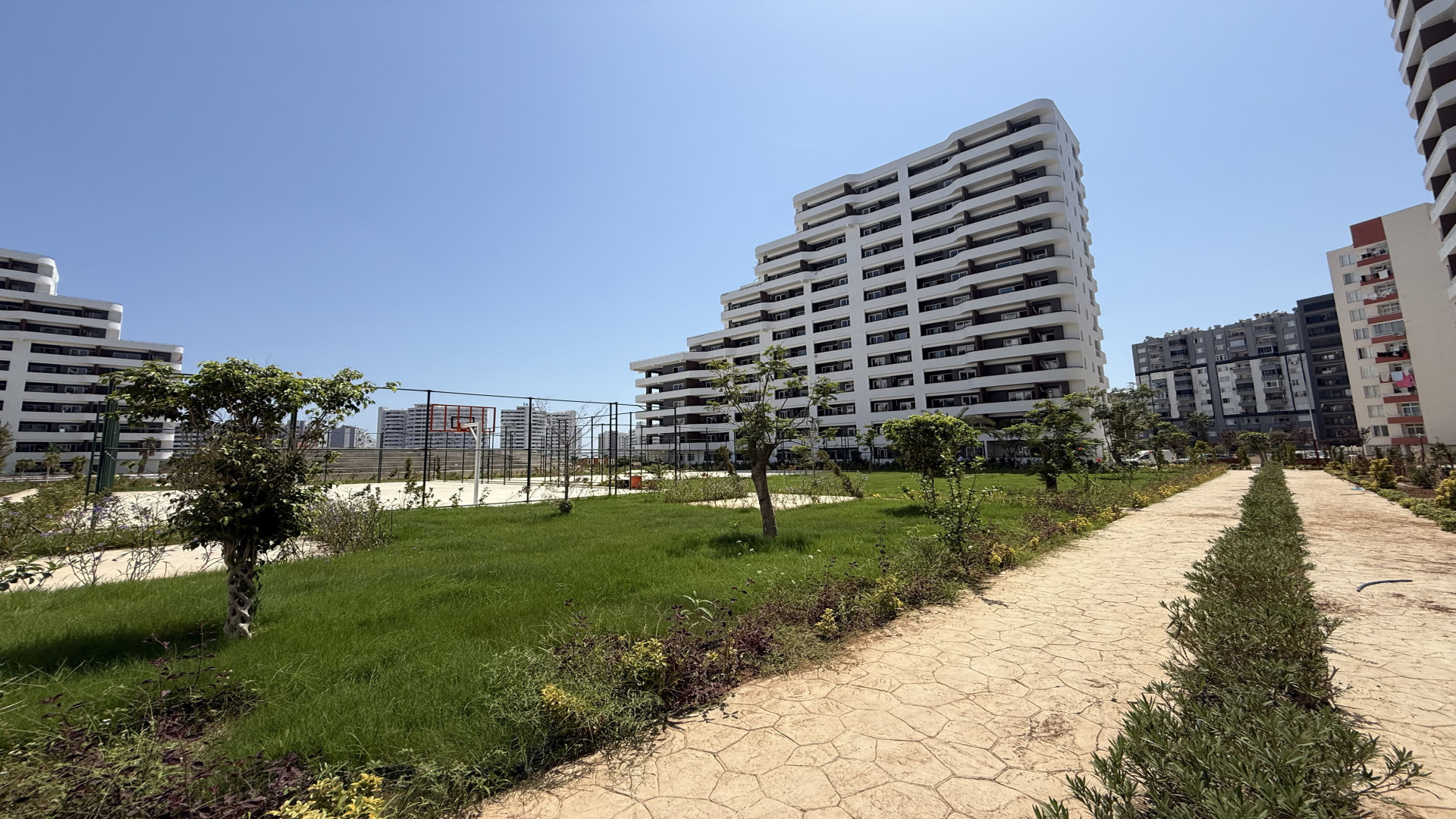 Tömük/Erdemli'de, 15 katlı binanın 3. katında 70 m² brüt (50 m² net) 1+1 daire. Cephe: güney ve batı. Isıtma: doğalgaz kombi. Yeni bina. Hamam ve sauna mevcut.