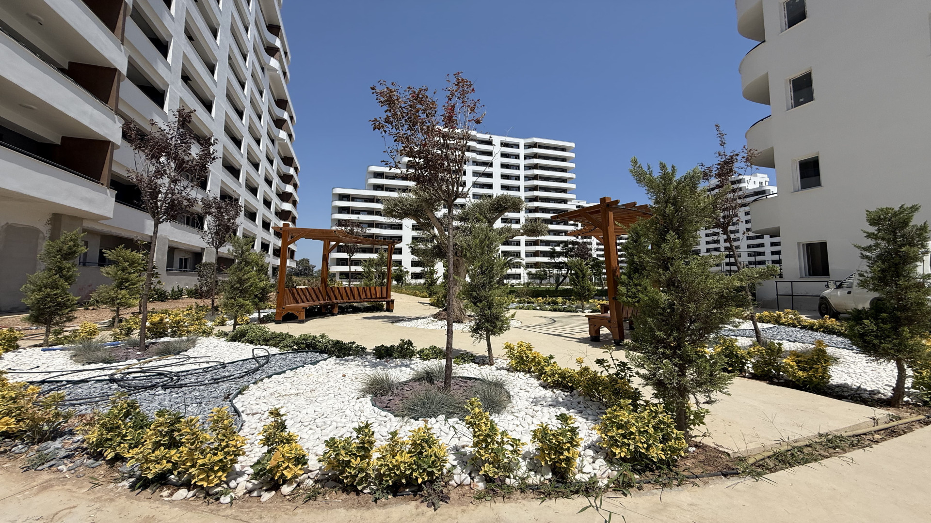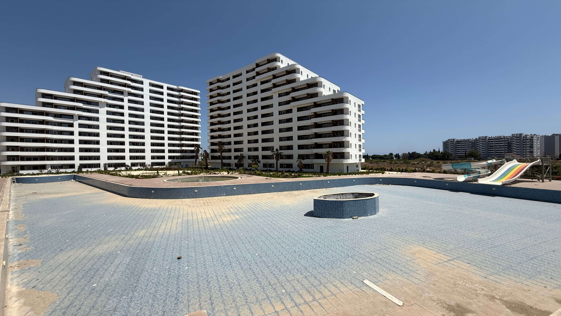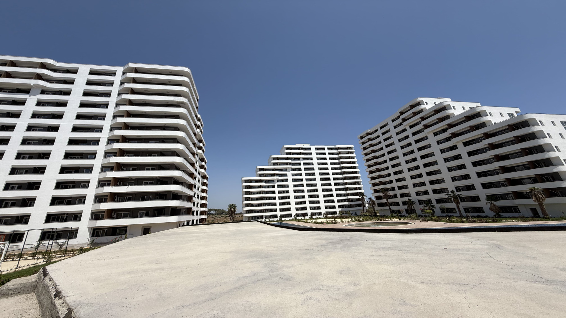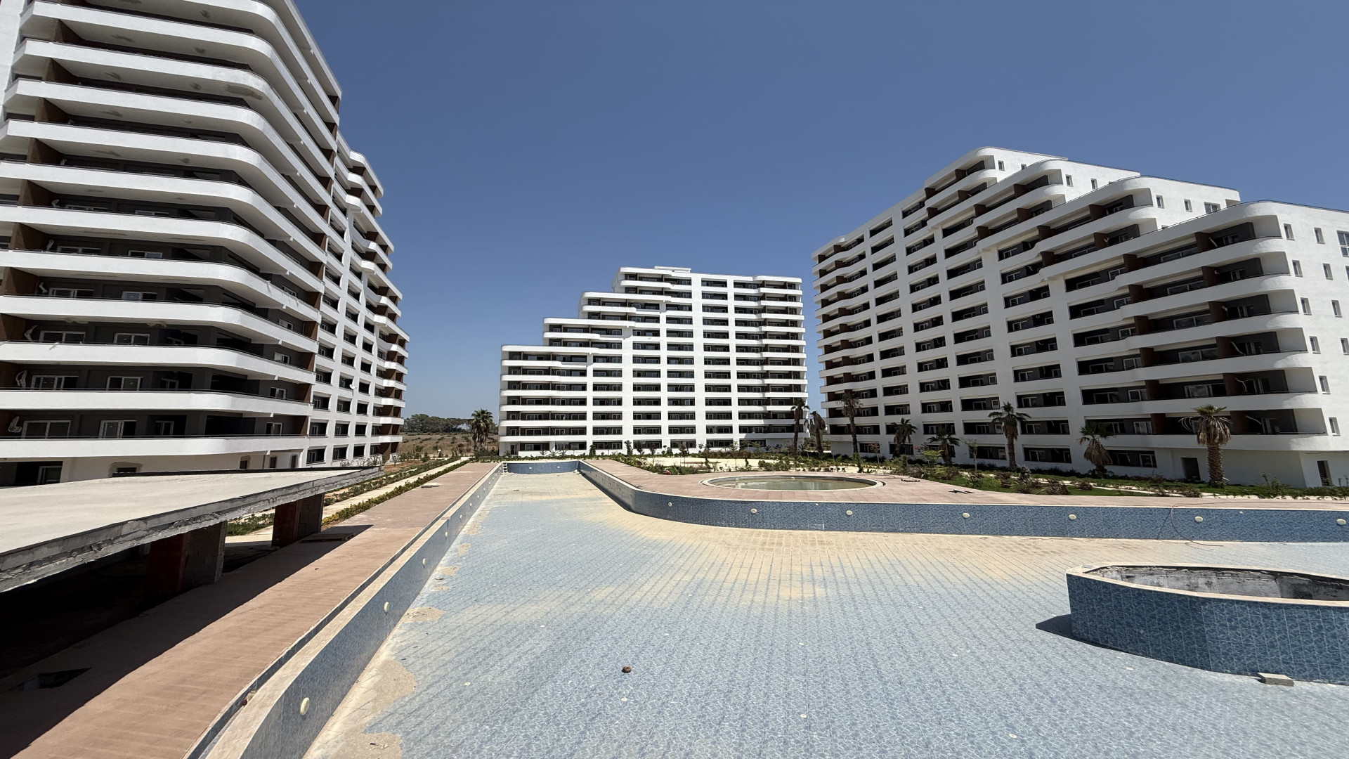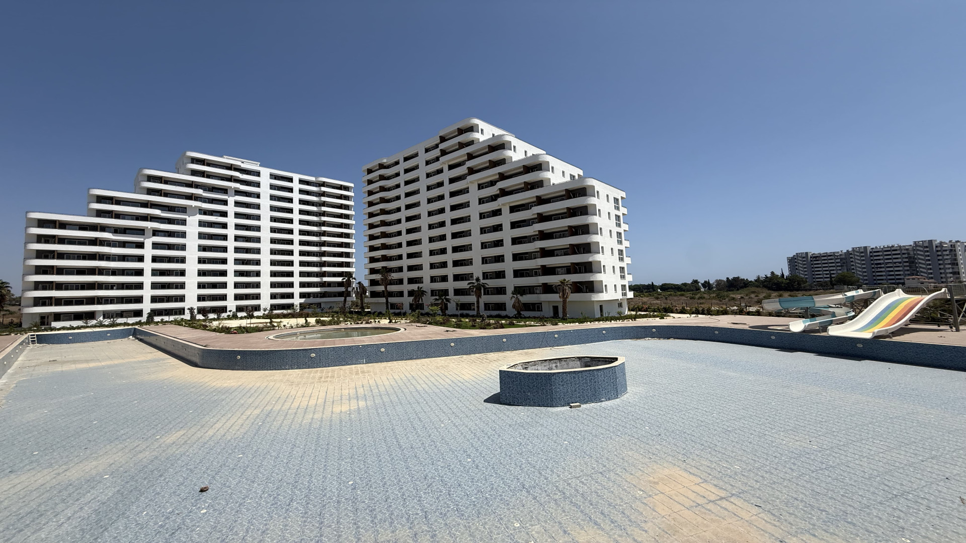 Tömük/Erdemli'de, 15 katlı binanın 3. katında 70 m² brüt (50 m² net) 1+1 daire. Cephe: güney ve batı. Isıtma: doğalgaz kombi. Yeni bina. Hamam ve sauna mevcut.
