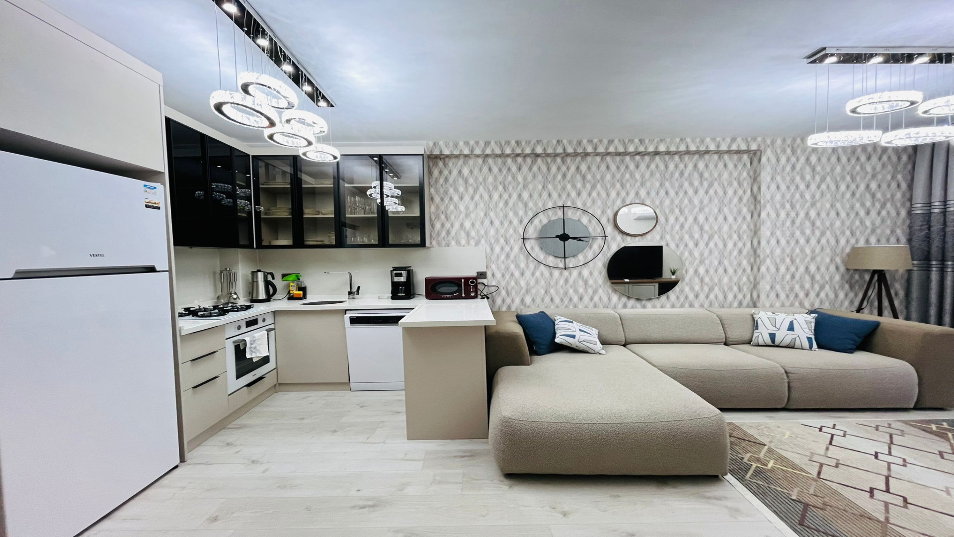 Ayaş/Erdemli'de denize sıfır 97 m² brüt (82 m² net) 2+1 daire, 6 katlı binanın 2. katı. Cephe: doğu ve güney. Isıtma: klima. Yeni bina. Hamam ve sauna mevcut.